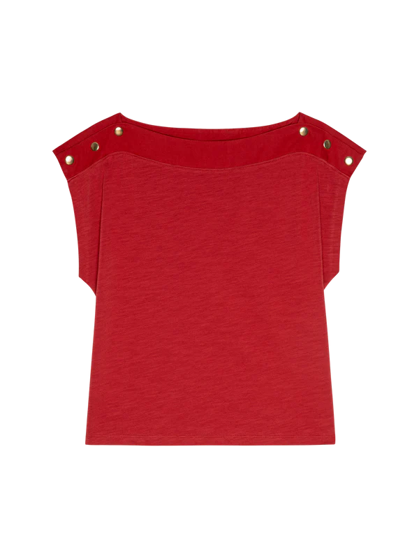An everyday essential in our 100% cotton heavy slub, this boatneck top features gold-tone snap details along the shoulders.