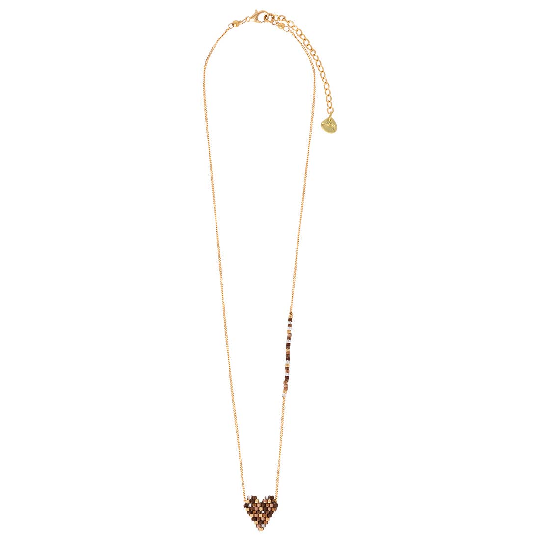 Warm brown tones in heart and gold-plated finishes give this necklace a grounded, sophisticated look — perfect for layering during the fall season.