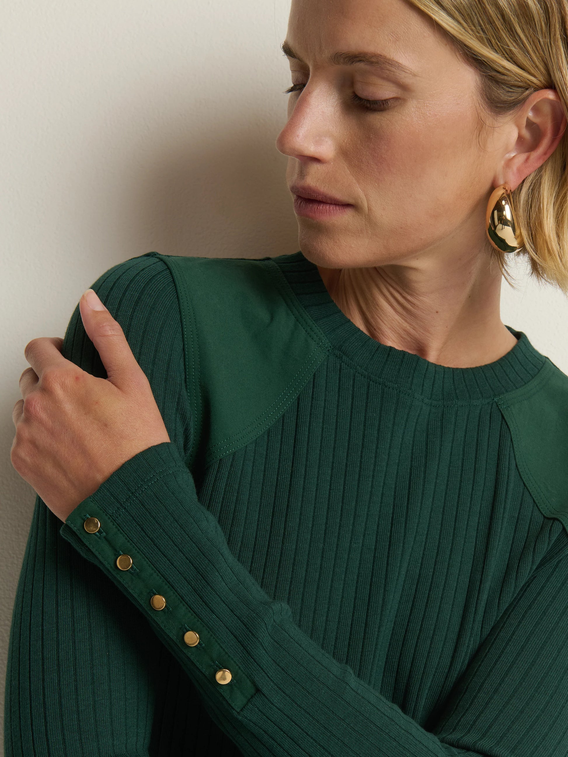 Details that turn heads. The Maxine Long Sleeve is a flattering, fitted core piece with a crew neck, shank button cuffs, and contrast poplin yoke detail at the shoulders. Finished with an irresistibly soft rib, so anyone who brushes by won’t stop asking where it’s from.