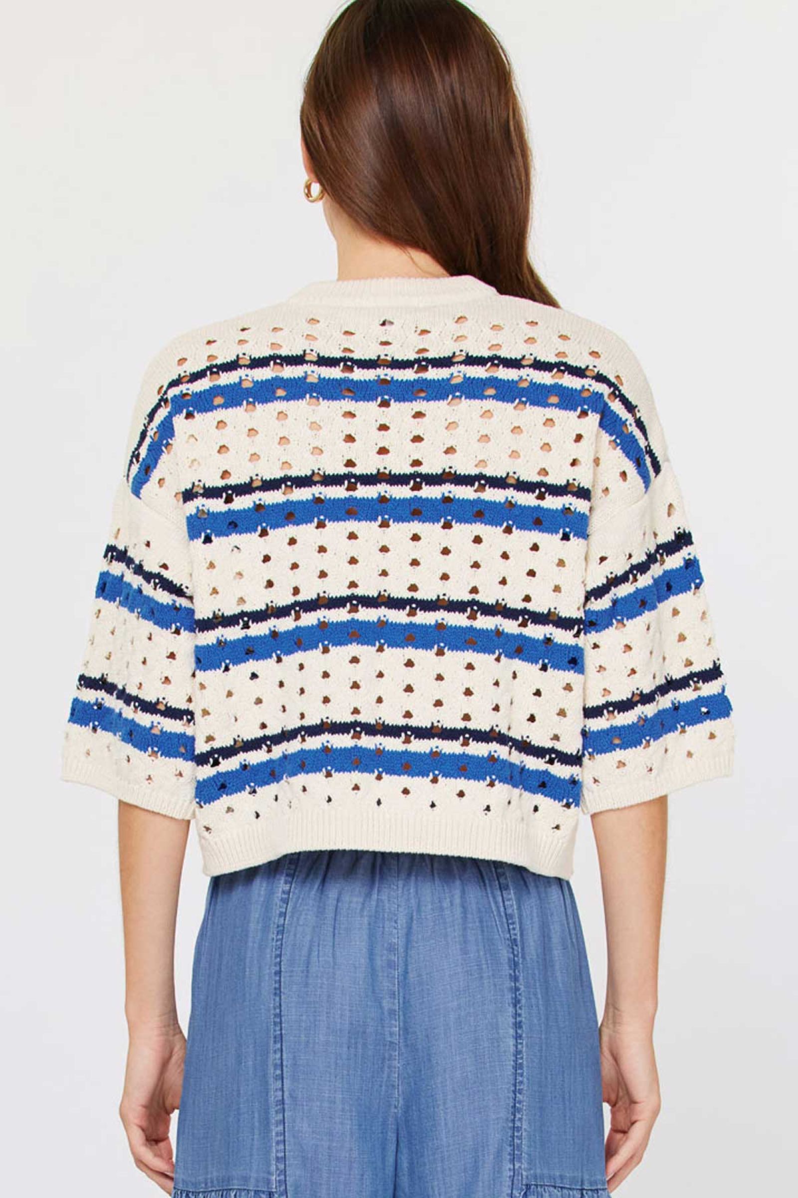 - HALF SLEEVES SHOULDER CROCHET SPLIT NECK DROPPED SHOULDER KNIT TOP
