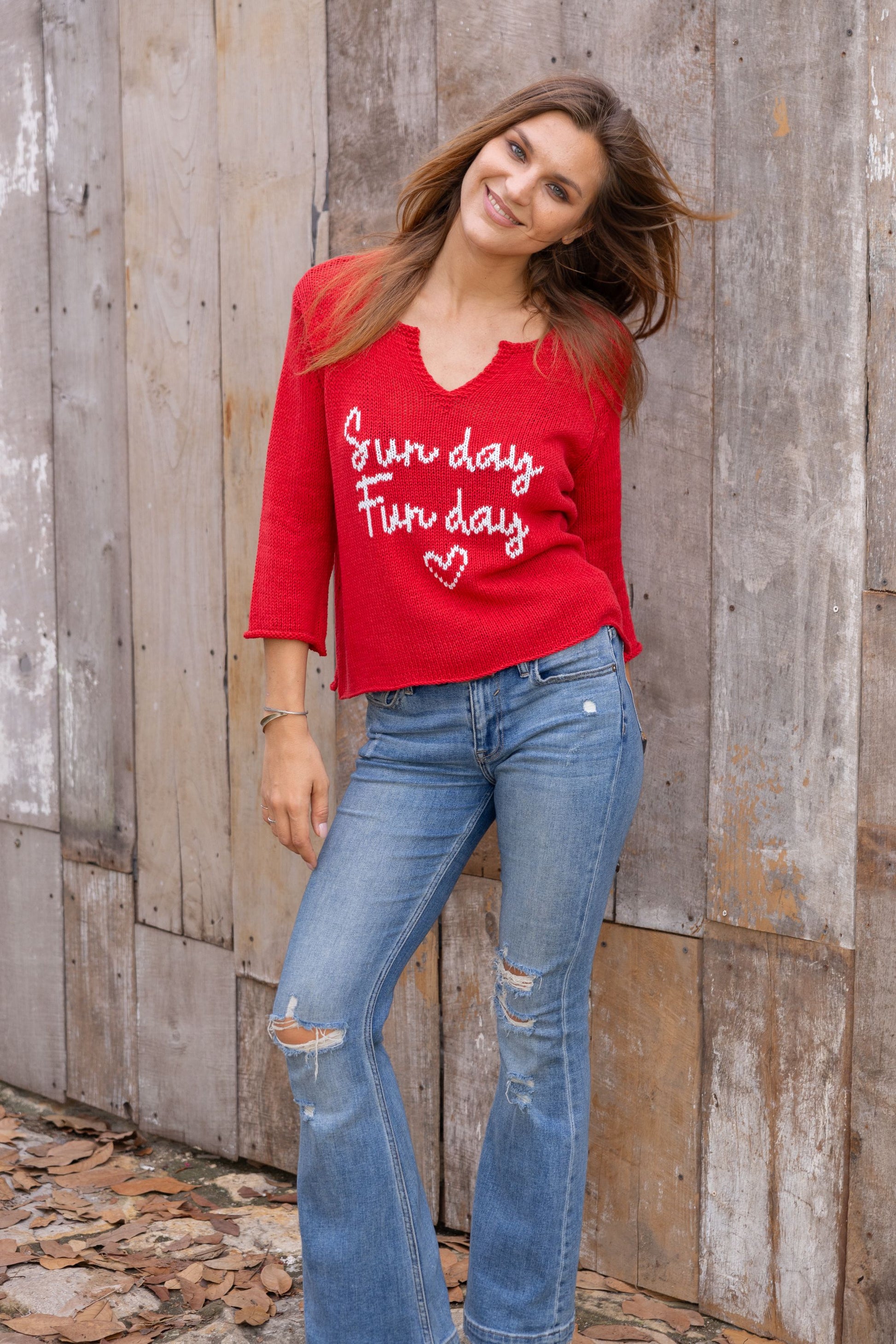 SUNDAY FUNDAY COTTON SWEATER - RED/WHITE
