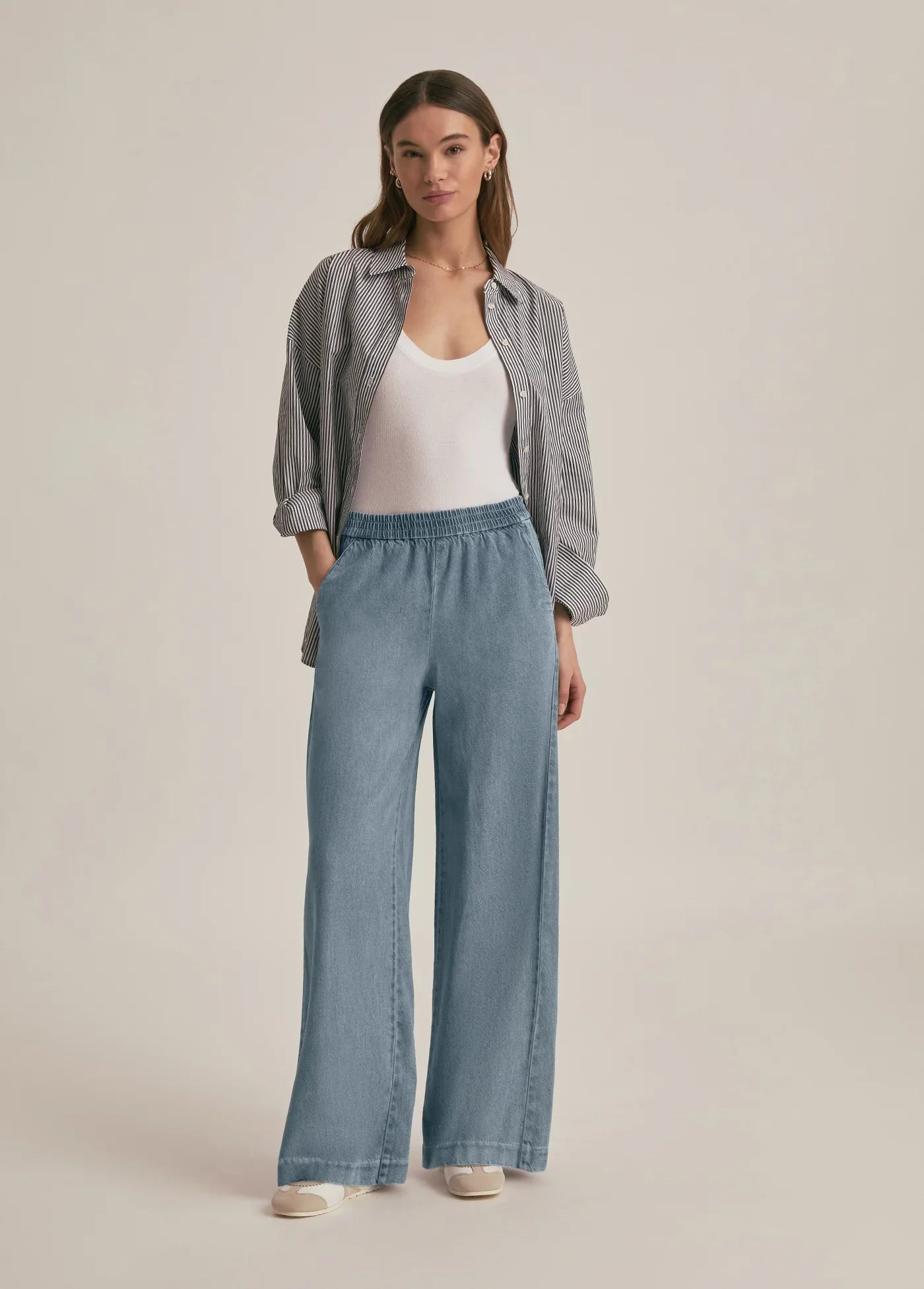 Meet The Malibu Wide Leg—your new lightweight rigid denim favorite. With a pull-on waist, slant trouser pockets, and a flowy wide leg (31" length that puddles on the floor), this pair is all about effortless style. Plus, the 14" rise and relaxed fit at the hips means you can wear these pants high or low and the classic medium-blue Coronado wash is perfect for easy, everyday wear.